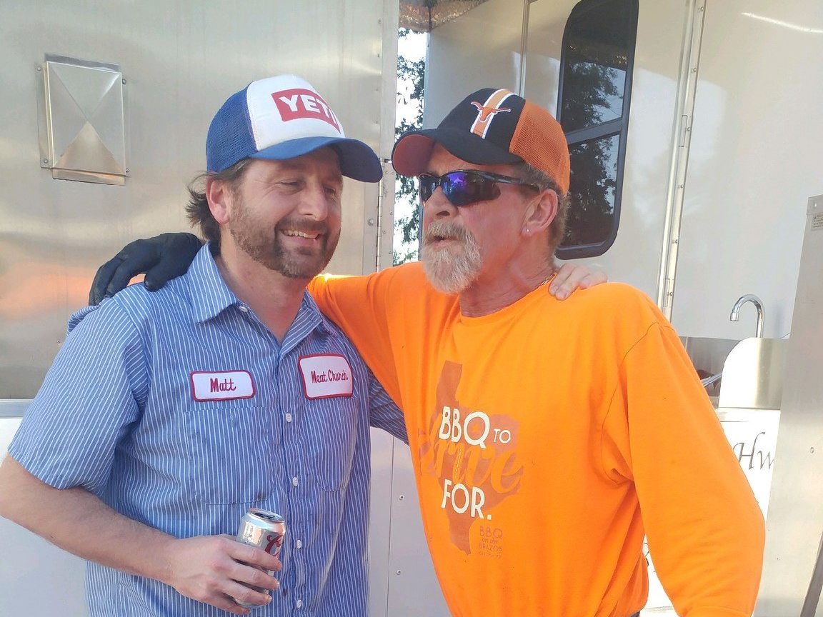 BBQ on the Brazos’ Father and Son hover over their hot fired-up pits. They are seasoned (pun intended) in dealing with daily surprises in the Texas weather. They welcome the challenges of working with differences in the quality and dryness of the wood, adapting pit heat to the variations in cuts and sizes of the meat, not to mention the airflow of wind through the smoker and the wide range of BBQ cooking challenges that make traditional barbecuing a daily test of true skill. Becoming skilled Pitmasters takes crazy long hours, honest hard work – and never, ever hurry the meat.